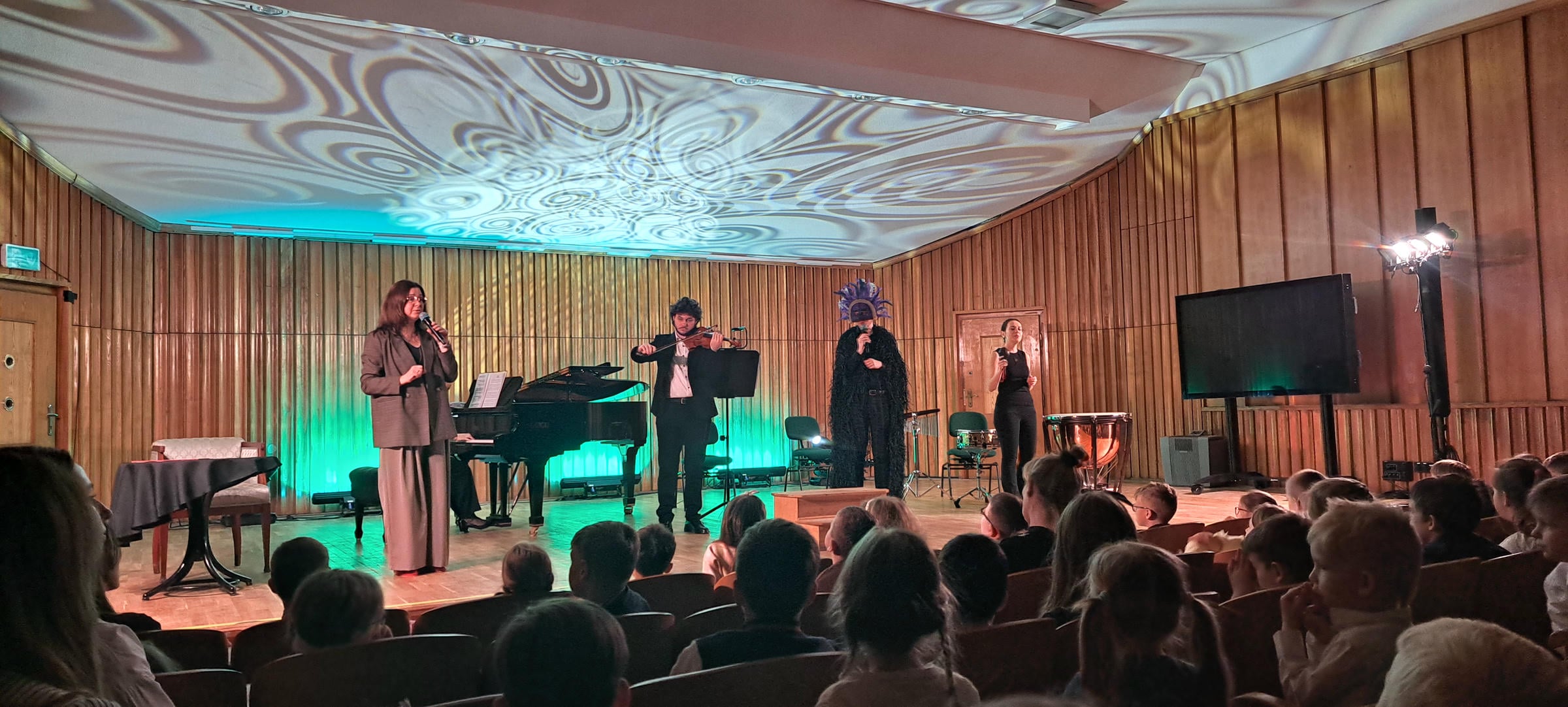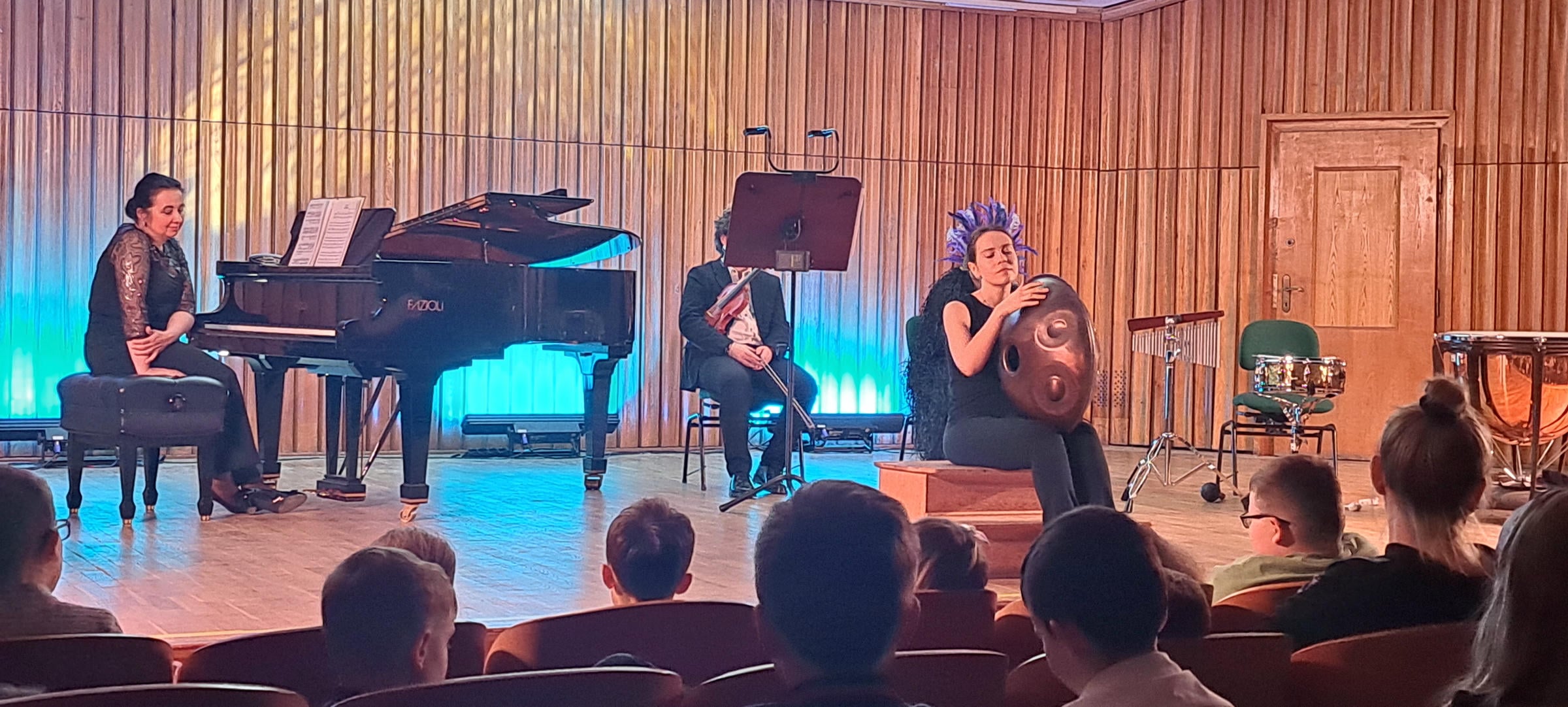 Dzieci z grup Pieski i Kotki odwiedziły Filharmonię Pomorską. Uczestniczyły w wydarzeniu muzycznym pt. „Muzyka ciszy”. Przedstawienie wprowadziło je w świat dźwięków, rytmu oraz ciszy. Dzieci z zainteresowaniem słuchały utworów i obserwowały artystów.
